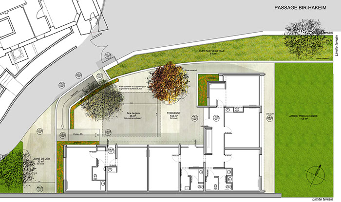 - hiérarchiser les espaces extérieurs afin de créer des zones répondant aux besoins pédagogiques de l’école,