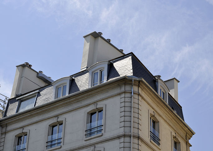 Situé sur les quais de Seine, ce projet consiste en la rénovation à l’identique de la toiture. Composée de pans de tuiles plates parisiennes, d’un terrasson en zinc et, de brisis en ardoises, cette toiture présente à elle seule la quasi-totalité des méthodes de mis en œuvre des couvertures parisiennes. Suite à la dépose, l’état de la charpente existante et de la sablière a occasionné des reprises ponctuelles.