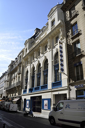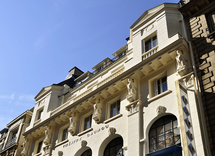 Au sein de le rue Daunou, la façade du théâtre conçu par l'Architecte Auguste Bluysen en 1921 fait exception.
